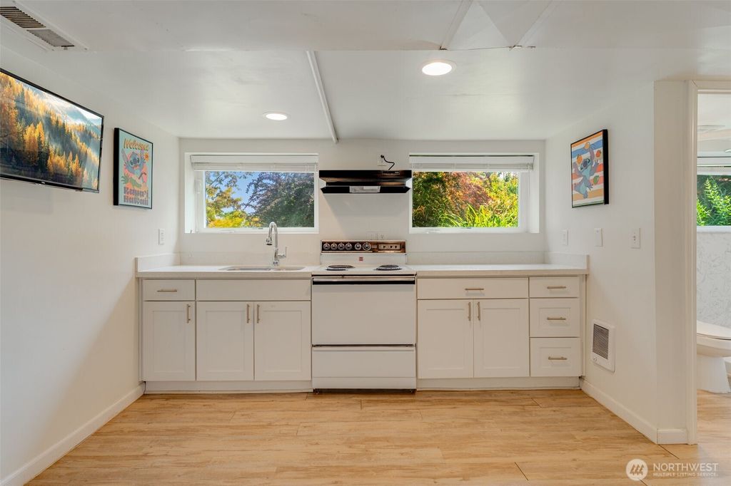 Lovely updated home with amazing views and a large lot that has already been permitted and approved by the city for an onsite DADU. Plus the Basement is a private apartment (one bedroom one bath plus a kitchen) with its own entrance connected to outside. Roof, siding, paint and interior are all recent. Great floorplan flow, and great natural light. Detached one car garage allows for parking and storage. Property has alley parking access to the southeast. The location makes for an easy commute to Seattle and the Eastside, and it close to some of Seattle's sought after amenities ; the Arboretum, Japanese Gardens, shopping, dining, UW, and Madison Park.