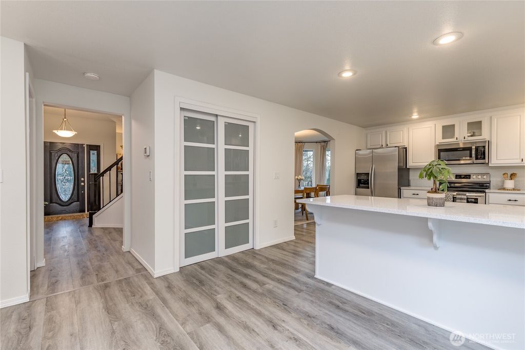 Welcome home to this spacious and thoughtfully updated 4-bedroom, 2.5-bath residence in the desirable Heritage Manor community of Puyallup. Offering 2,152 sq ft of well-designed living space, this home blends timeless character with modern comfort and a layout buyers consistently love. Inside, you’ll find two generous living areas, an open-concept flow, and both formal and casual dining spaces—perfect for entertaining or everyday living. The beautifully updated kitchen anchors the main level and opens seamlessly to the living room, while the refreshed powder room adds a modern touch. Upstairs, the spacious 5-piece primary suite provides a relaxing retreat, complemented by three additional bedrooms. Step outside and enjoy one of the home’s standout features: a large, fully fenced backyard with retaining walls that enhance privacy, a spacious patio for outdoor gatherings, and room to truly spread out. RV, boat, or trailer parking adds rare flexibility, while the west-facing front porch is the perfect place to unwind and take in evening sunsets. Located within highly regarded Puyallup schools, this home delivers space, function, and long-term value in a well-established neighborhood.