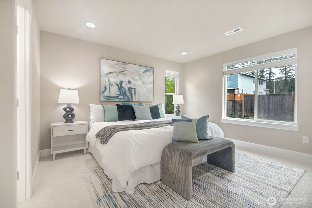 Welcome to this beautiful home in a prime Bothell location. Step into elegance with this 4-bedroom, 2.5-bath home nestled in a quiet, sought-after community. Now featuring brand new carpet and fresh interior paint, this one-owner 2018 home has been meticulously maintained and shows better than new construction. The home offers quartz countertops, hardwood floors, air conditioning, a security system, and more. The kitchen shines with quartz counters, stainless steel appliances, a gas cooktop, and a spacious pantry for all your storage needs. The microwave and refrigerator were replaced in 2025. Upstairs, unwind in the luxurious primary suite featuring a five-piece en-suite bath and a generous walk-in closet. Three additional spacious bedrooms and a convenient upstairs laundry room complete the upper level. The open-concept main floor with high ceilings creates bright, inviting living and dining spaces perfect for entertaining. Step outside to a covered patio with a gas BBQ connection—ideal for summer gatherings and year-round enjoyment. Located directly across from Tambark Park soccer fields and just a short walk to highly sought-after Tambark Creek Elementary. Pre-inspected, with inspection report available upon request.