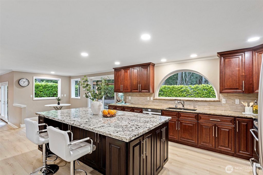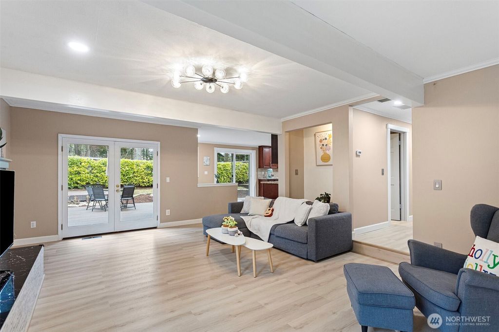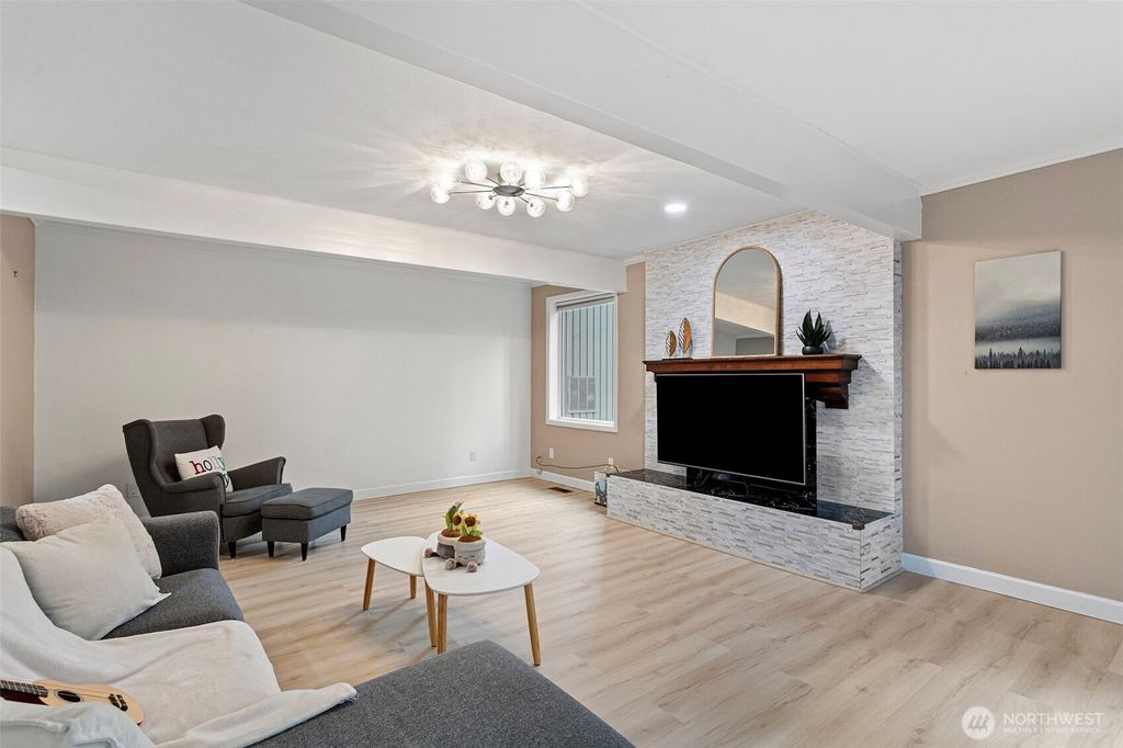 Beautifully updated single-family home in a prime Mill Creek location! Recently refreshed with new exterior paint, a newly finished back deck, and luxury vinyl plank (LVP) flooring throughout, this home is truly move-in ready and designed for modern living.The bright living room features vaulted ceilings, creating an open and airy atmosphere filled with natural light. The spacious kitchen is perfect for entertaining, showcasing a huge center island, upgraded kitchen vent, generous counter space, and a functional layout that flows seamlessly into the main living areas. Step outside to the finished back deck—ideal for summer BBQs, morning coffee, or relaxing evenings.Located just minutes from shopping, dining, scenic trails, parks, and Mill Creek Town Center, this home offers the perfect blend of comfort, style, and convenience with easy access to major commuter routes. A fantastic opportunity to own a beautifully updated home in desirable Mill Creek Country Golf community with top-rated schools!