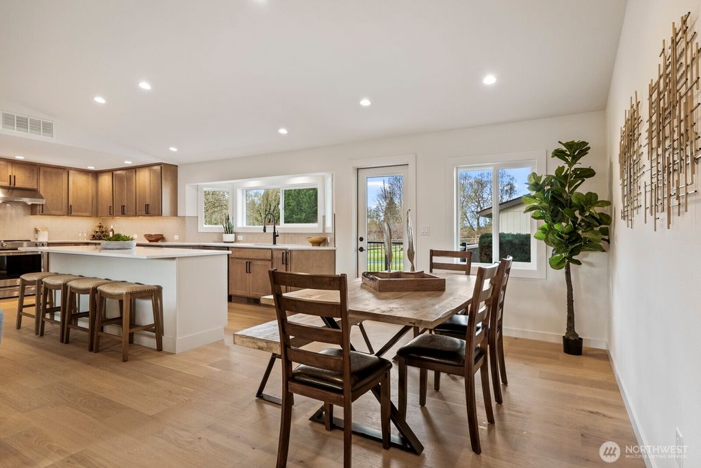 A rare opportunity to own a private airstrip estate in the heart of the Snoqualmie Valley with breathtaking Mt. Si views. Ideally situated in Spring Glen on a tranquil 1-acre setting, this exceptional property offers the perfect blend of comfort, recreation & lifestyle. Boasting over 3,500 sq ft, the completely updated home showcases quality finishes throughout with no stone left unturned, including new vinyl windows, elevated exterior siding & stonework, California Closets throughout, and a spa-inspired ensuite. Enjoy peace of mind with updated systems - new water heater, refreshed HVAC/AC, upgraded electrical panel, 30 yr roof, and freshly paved driveway. The versatile layout features a perfect ground-level MIL setup, lower-level movie room, & a vaulted great room. Designed for both hobbies & entertaining, the property includes a 3-car garage, an oversized airplane hangar/shop for toys, & a separate heated garage perfect for a home gym, studio, or workshop. Aviation enthusiasts will appreciate partial ownership in the neighborhood airstrip — a rare and highly sought-after amenity. Revel in the peaceful surroundings from the expansive deck overlooking the spacious grounds. The property offers a circular driveway, basketball hoop, play area, and space for gardening or outdoor living, all while views of Mt. Si welcome you home. Not in the flood zone.